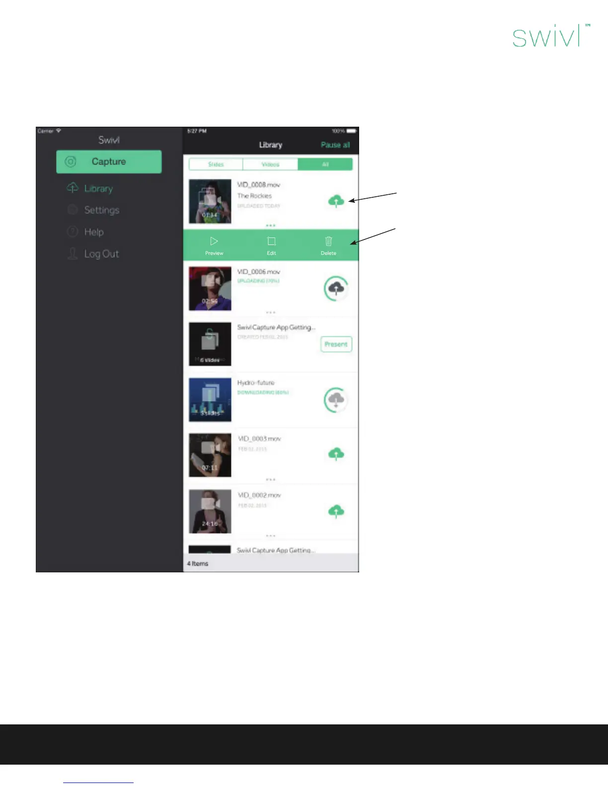 recommended that you upload videos to Swivl Cloud and then delete them from your device when possible. If you are sharing a