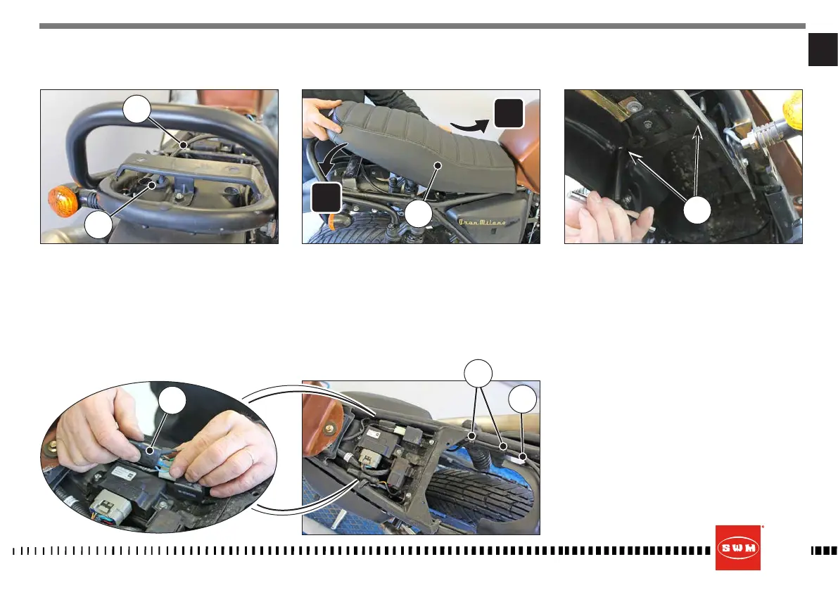 - Montare la sella (19) agganciandola anteriormen-