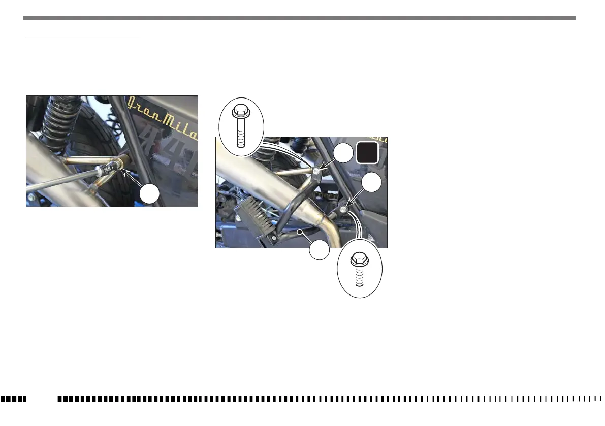 - Svitare la vite (1) di fissaggio silenziatore di scarico.