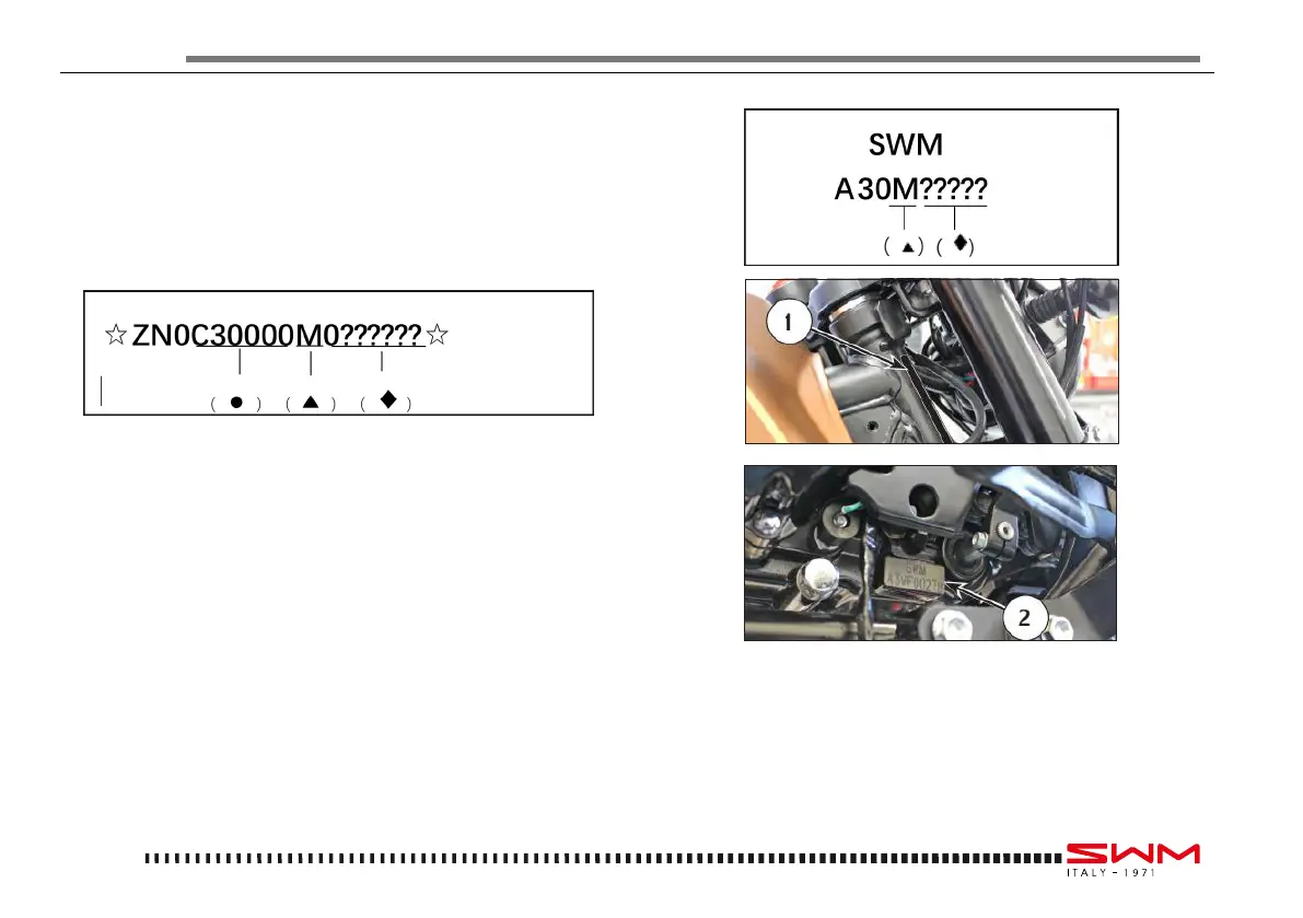 The full 17-digit serial (1), or Vehicle Identification Number, is stamped on the