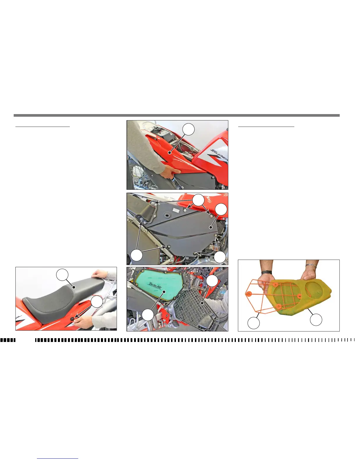 - Desenganchar el carenado (3) trasero derecho de