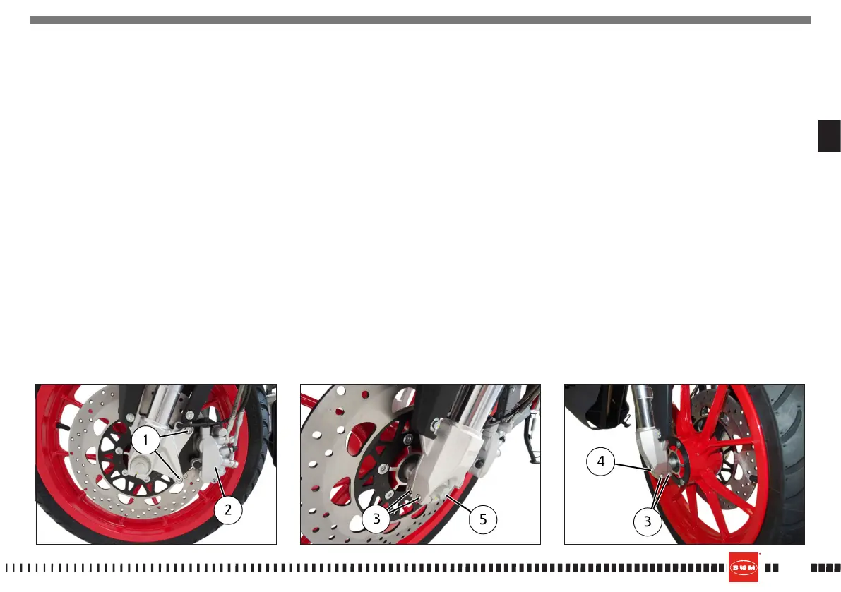 Die beiden Schrauben (1) lösen, dann den Bremssattel