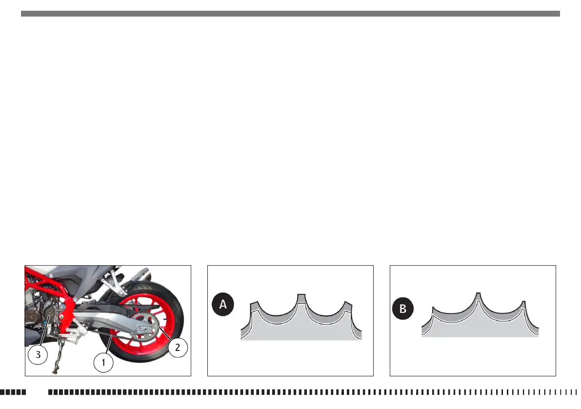 - Controllare lo stato dei denti del pignone (3), corona