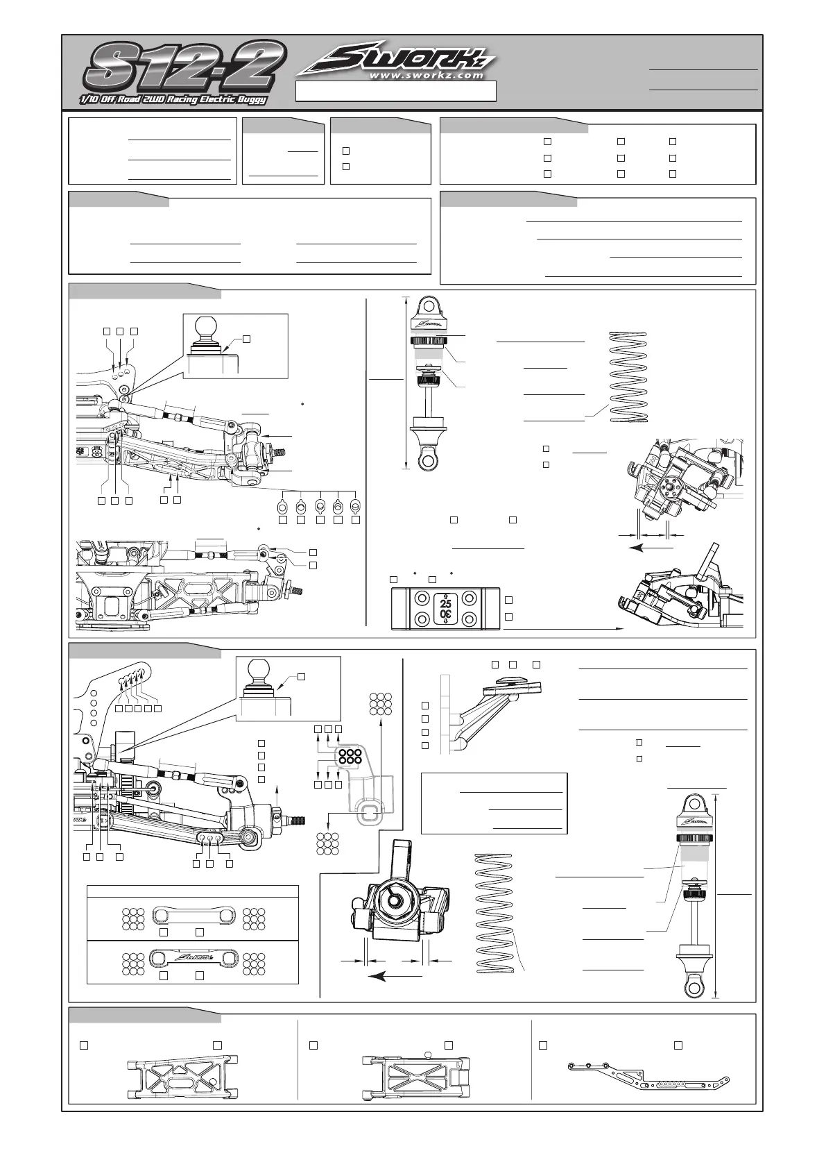 SWorkz S12-2 - Setup Sheet; Track Conditions Setup; Electric System Setup; Front Suspension Setup