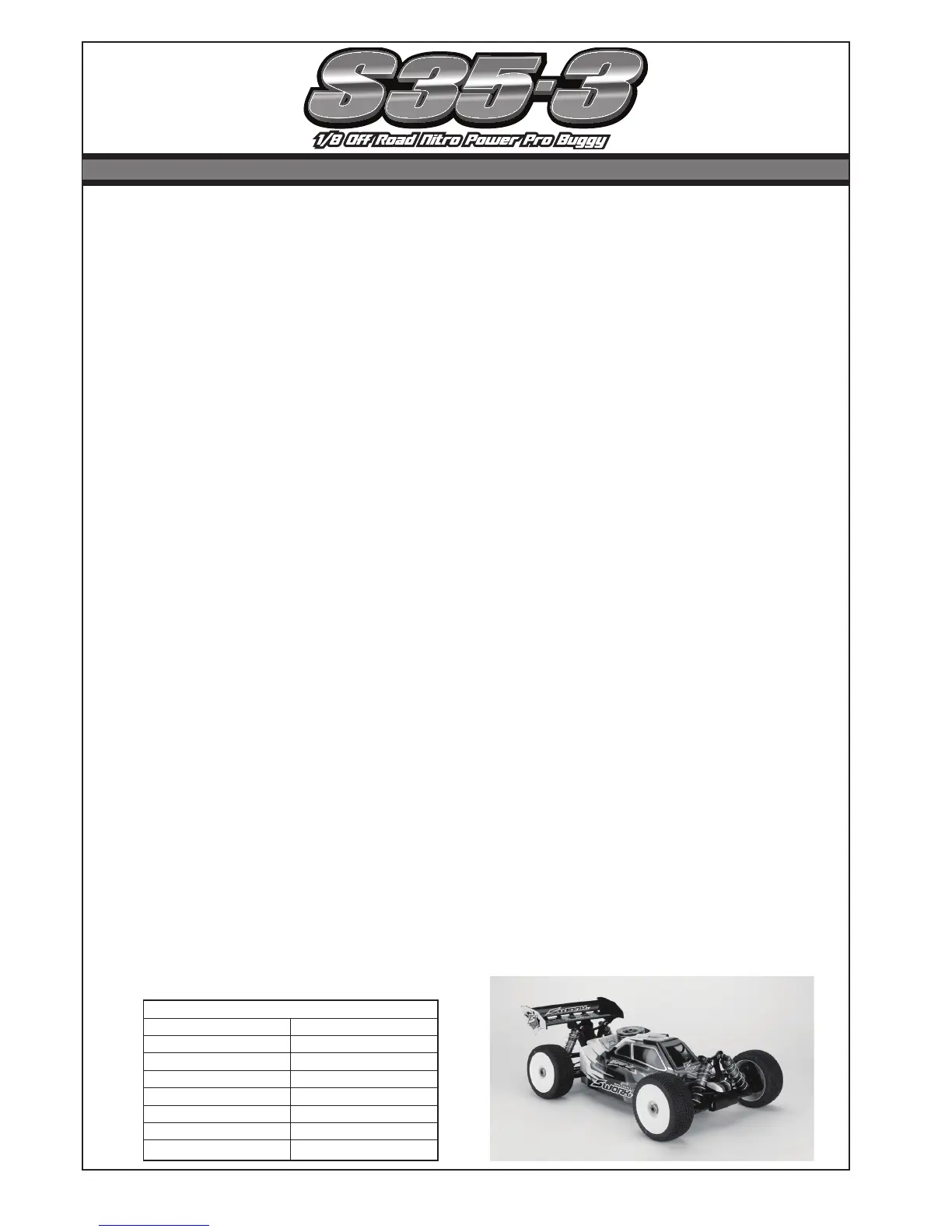 reliable vehicle. The S35-3 Pro Kit has been designed to win. Congratulations on your purchase of the
