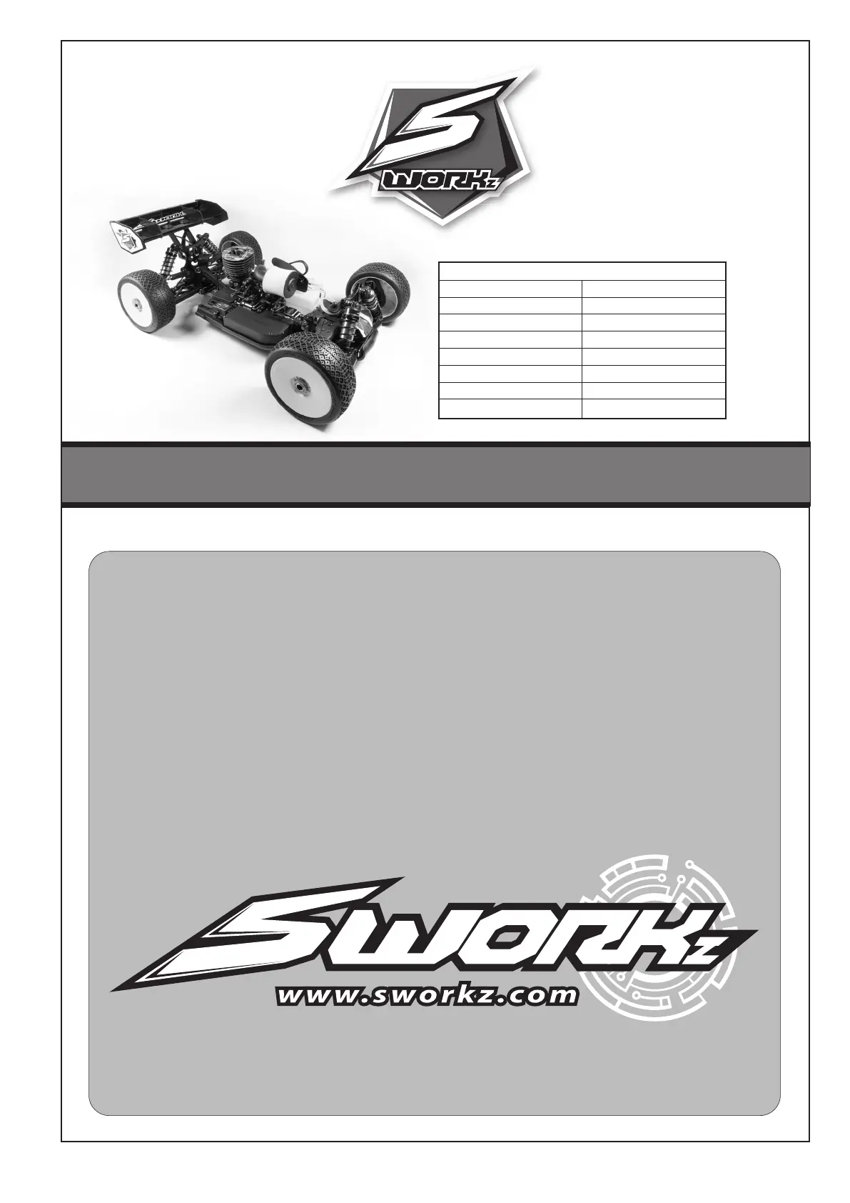 Contact your local hobby shop or SWORKz distributor for all claims and