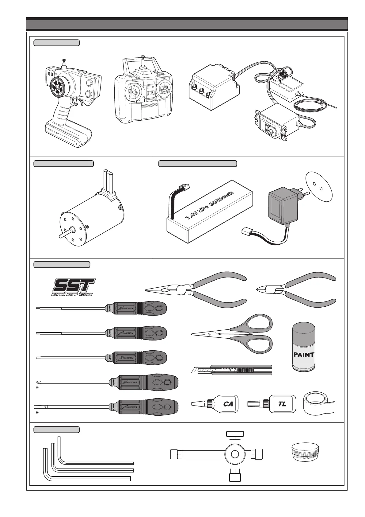 SWorkz ZEUS - Required Equipment for Operation; Radio Gear Components; Motor and Power Components; Recommended Tools