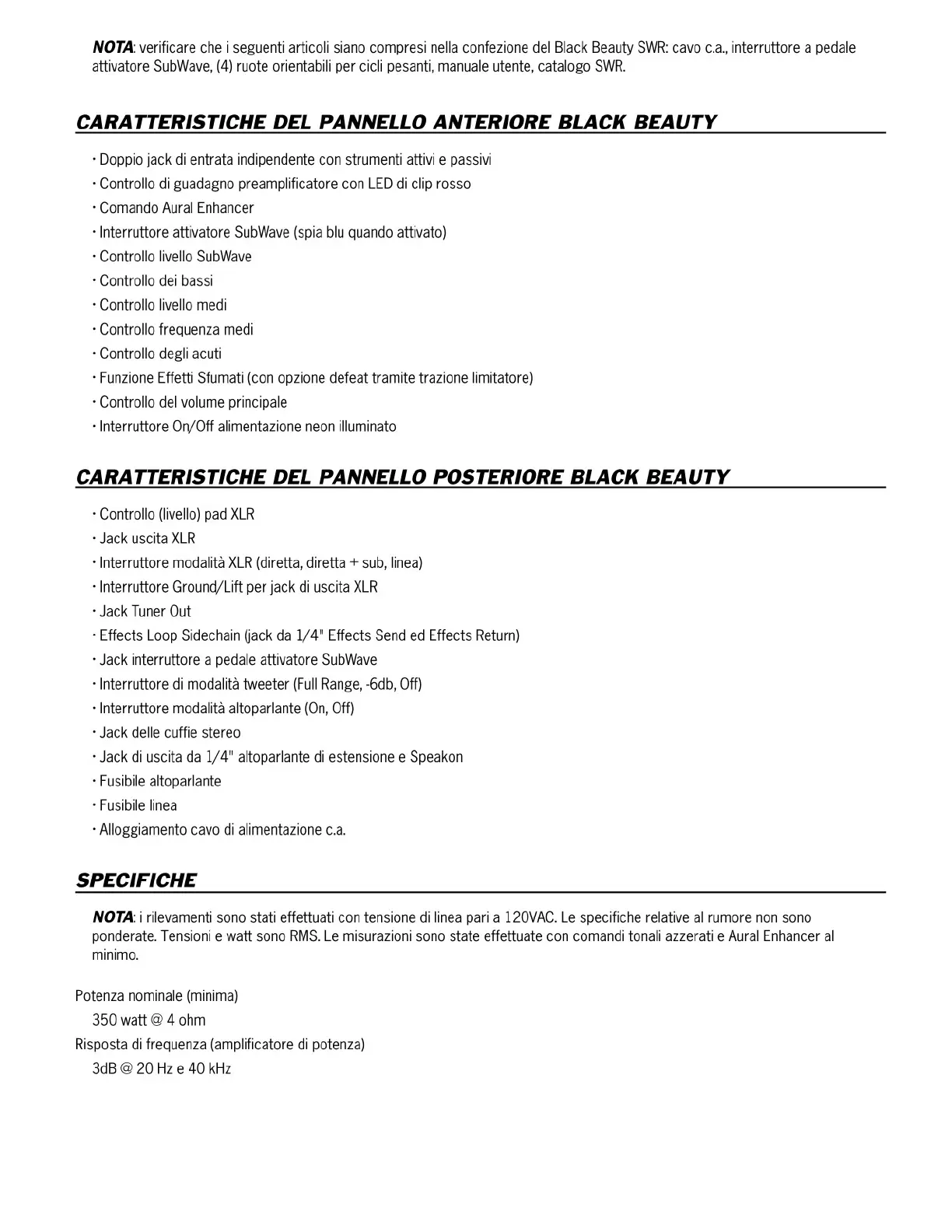 Other manuals for SWR Black Beauty
