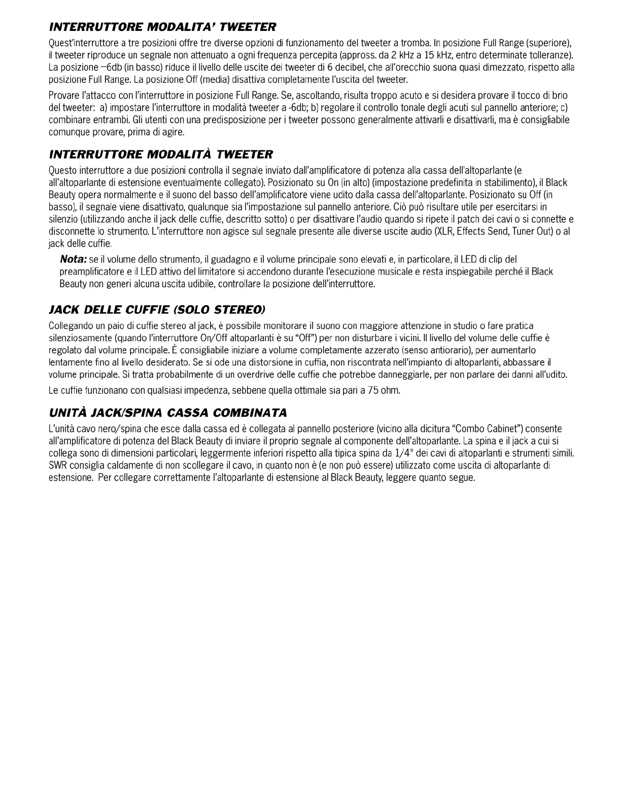 Other manuals for SWR Black Beauty