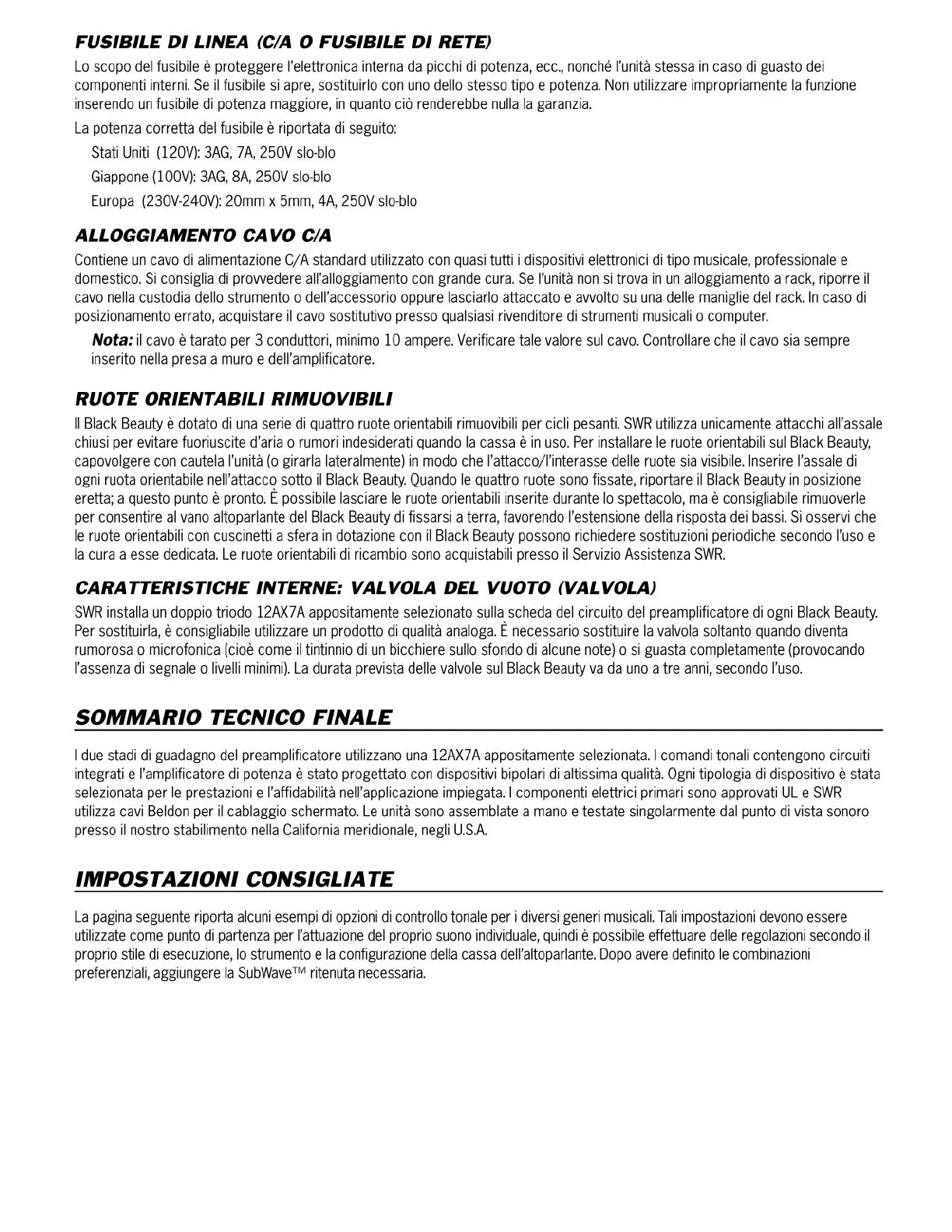 Other manuals for SWR Black Beauty