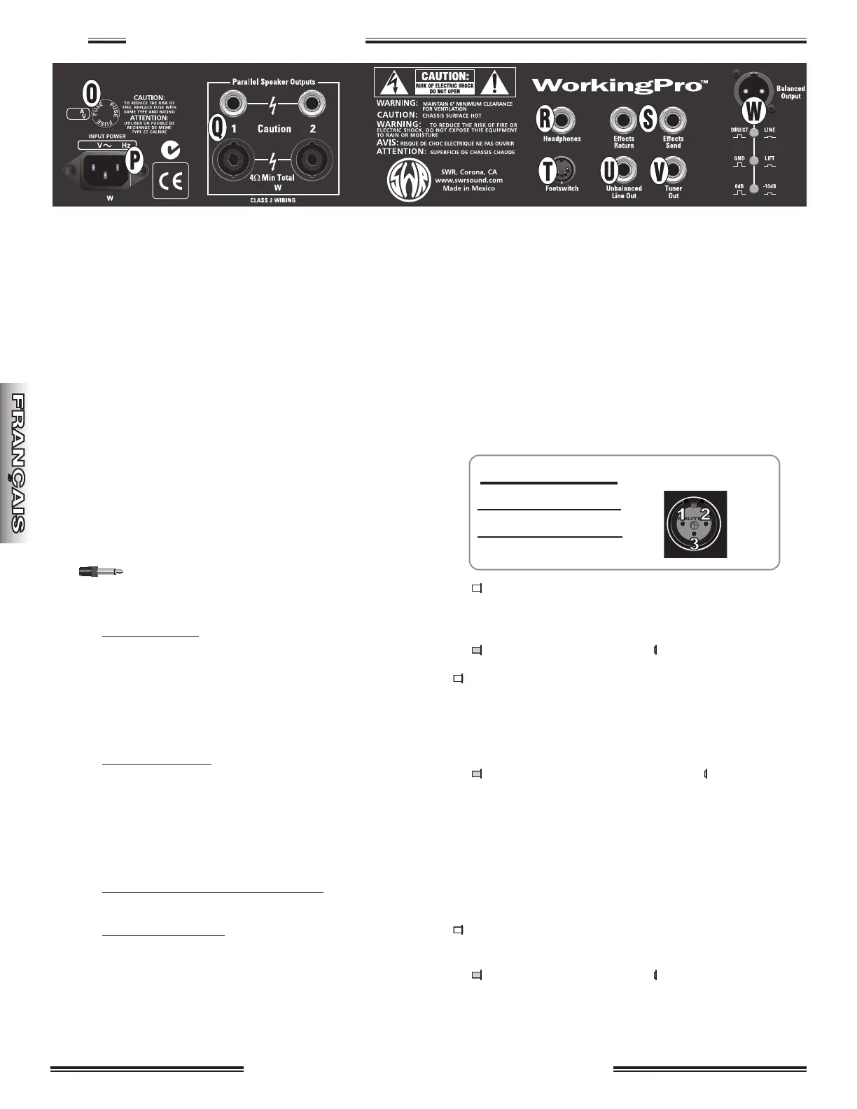 W. BALANCED (XLR) OUTPUT - Sortie à symétrie