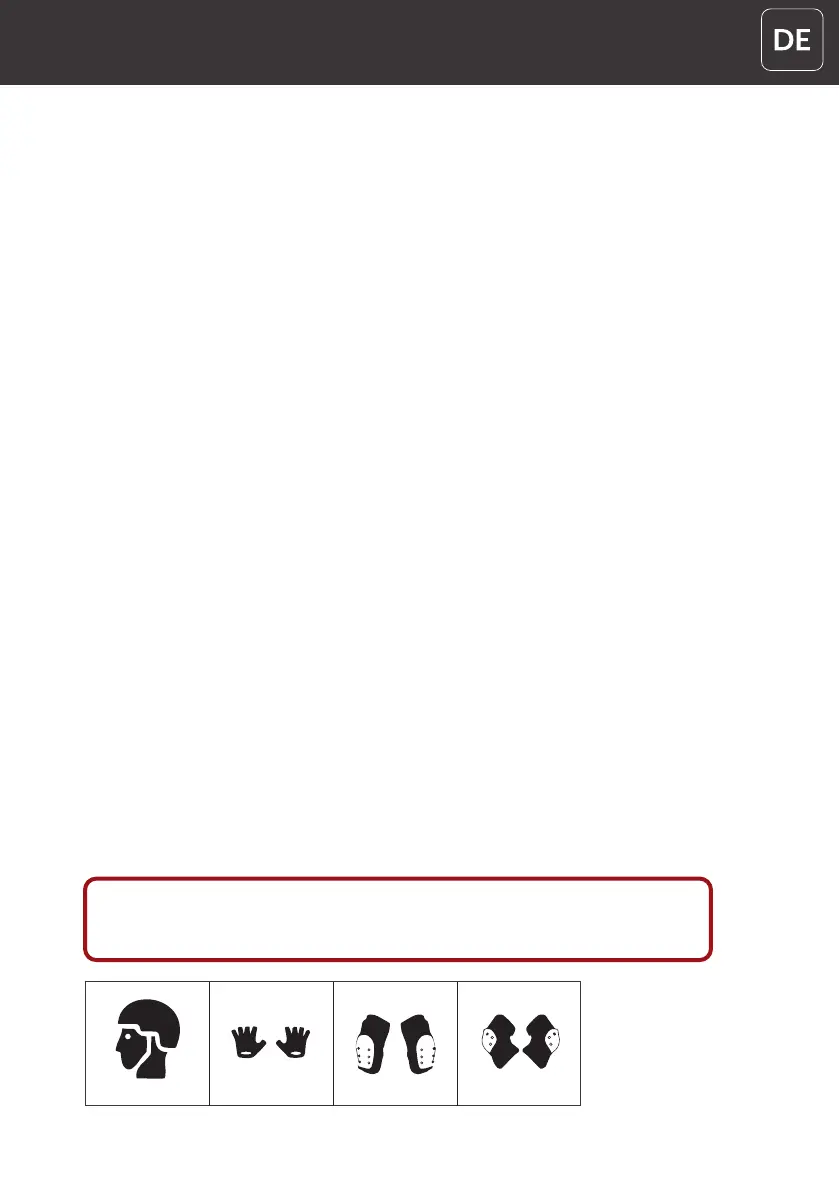 empfehlen ebenfalls Ellbogen und Knieprotektoren, langärmelige Oberbekleidung,