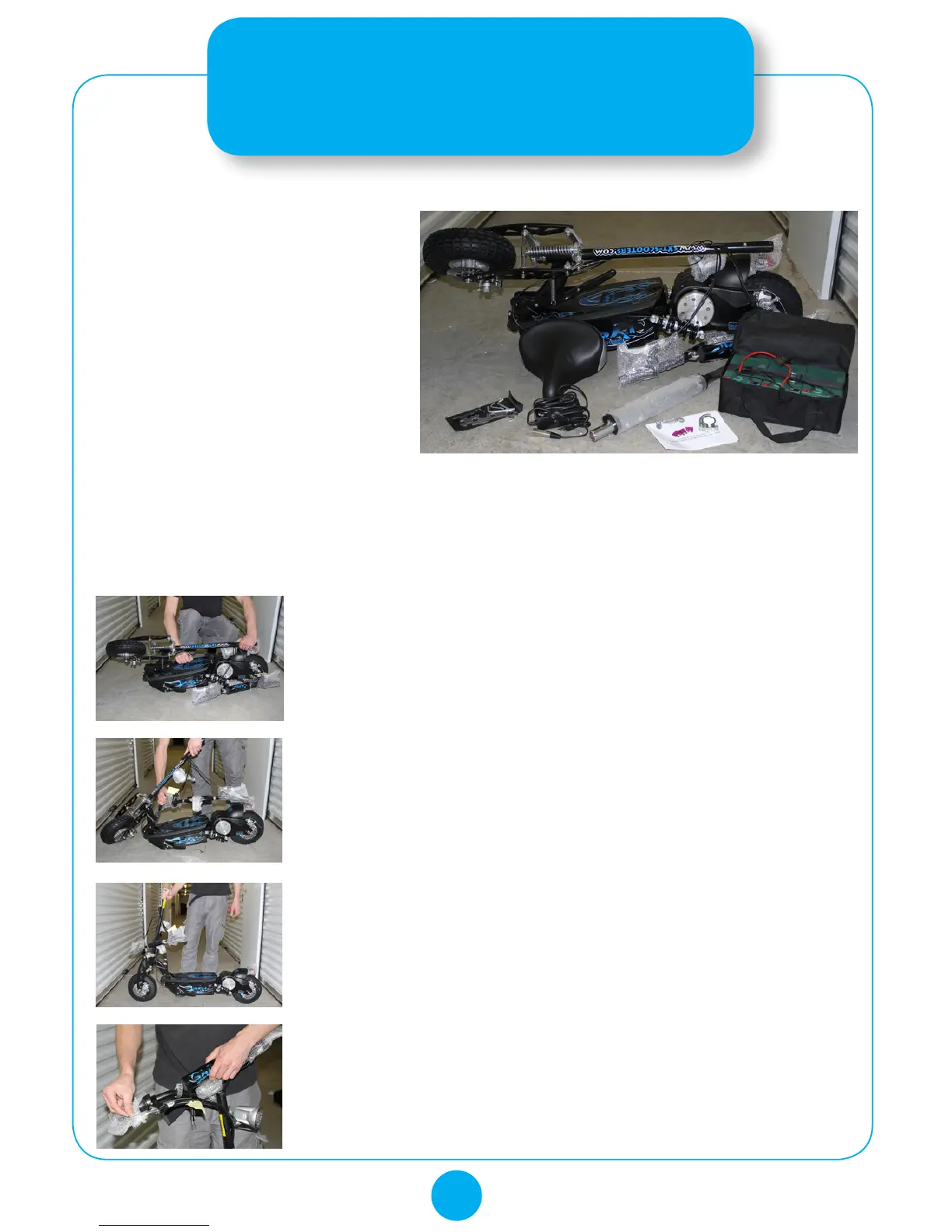 1. Déballer la trottinette SXT de son carton et enlever toutes