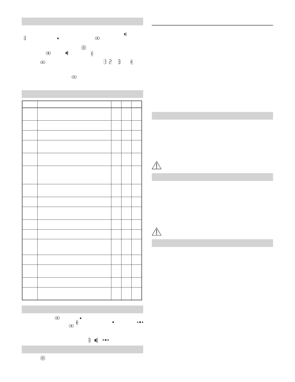 (-) hnappinn þar til æskilegri hljóðstillingu er náð. Taflan yfir hljóðstillingar sýnir hvaða hljóð eru virk í hverri