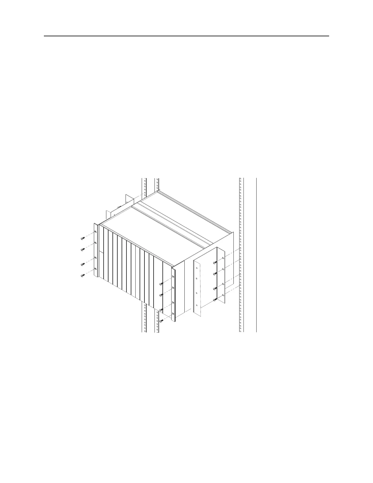 4. Line up the oval holes of the center mounting brackets with the 23-inch equipment rack.