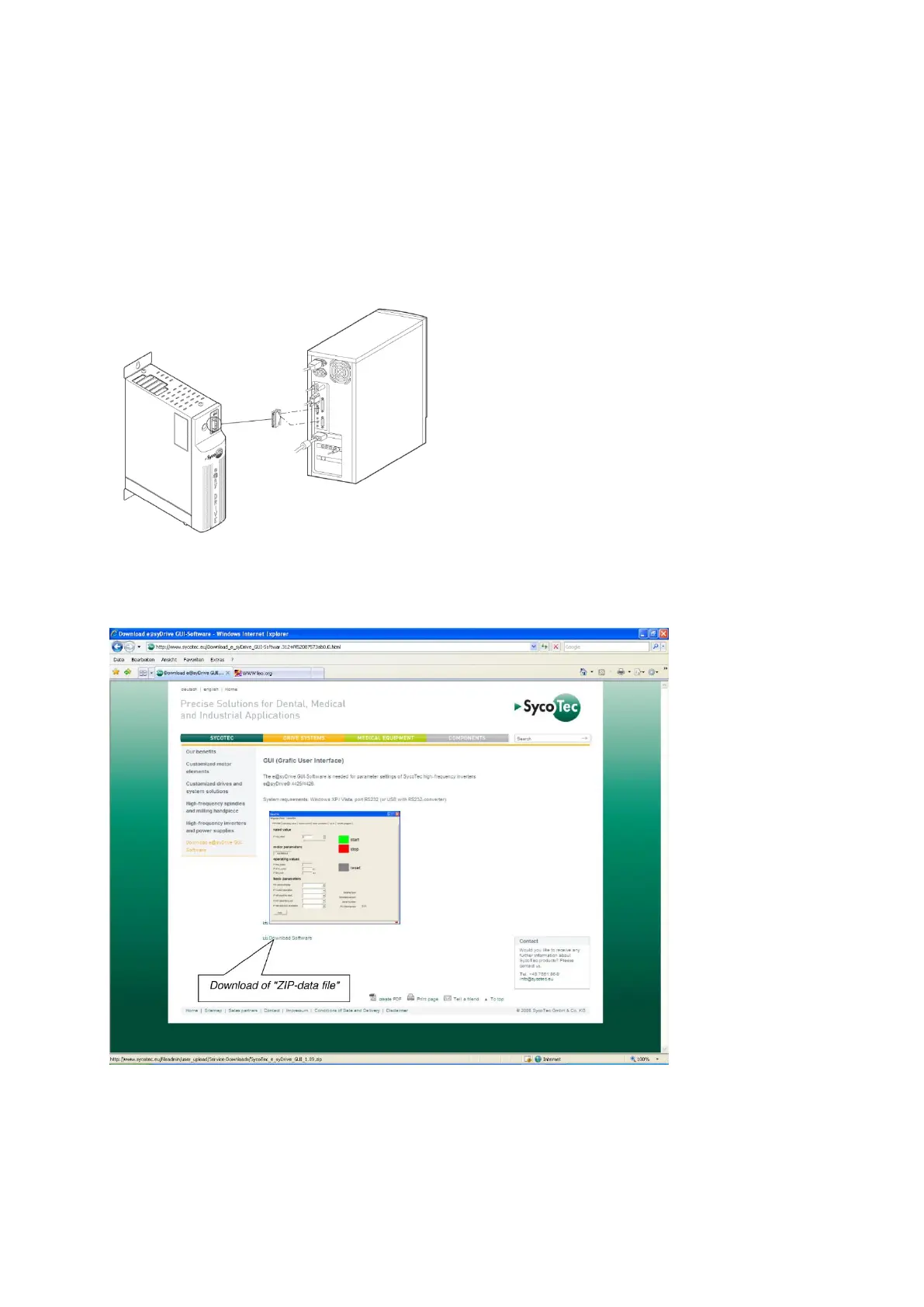 www.sycotec.eu -> High-frequency inverters -> Download e@syDrive GUI-Software