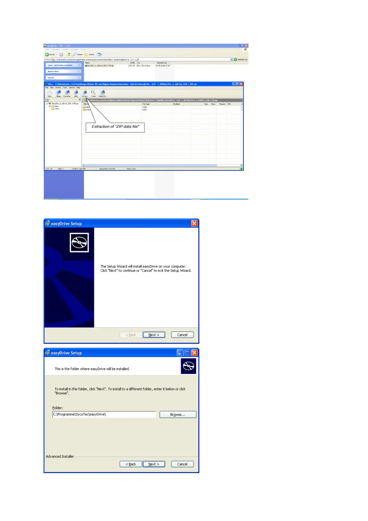 Installation of the operating software (via data file: easyDrive_GUI_Installer.msi)