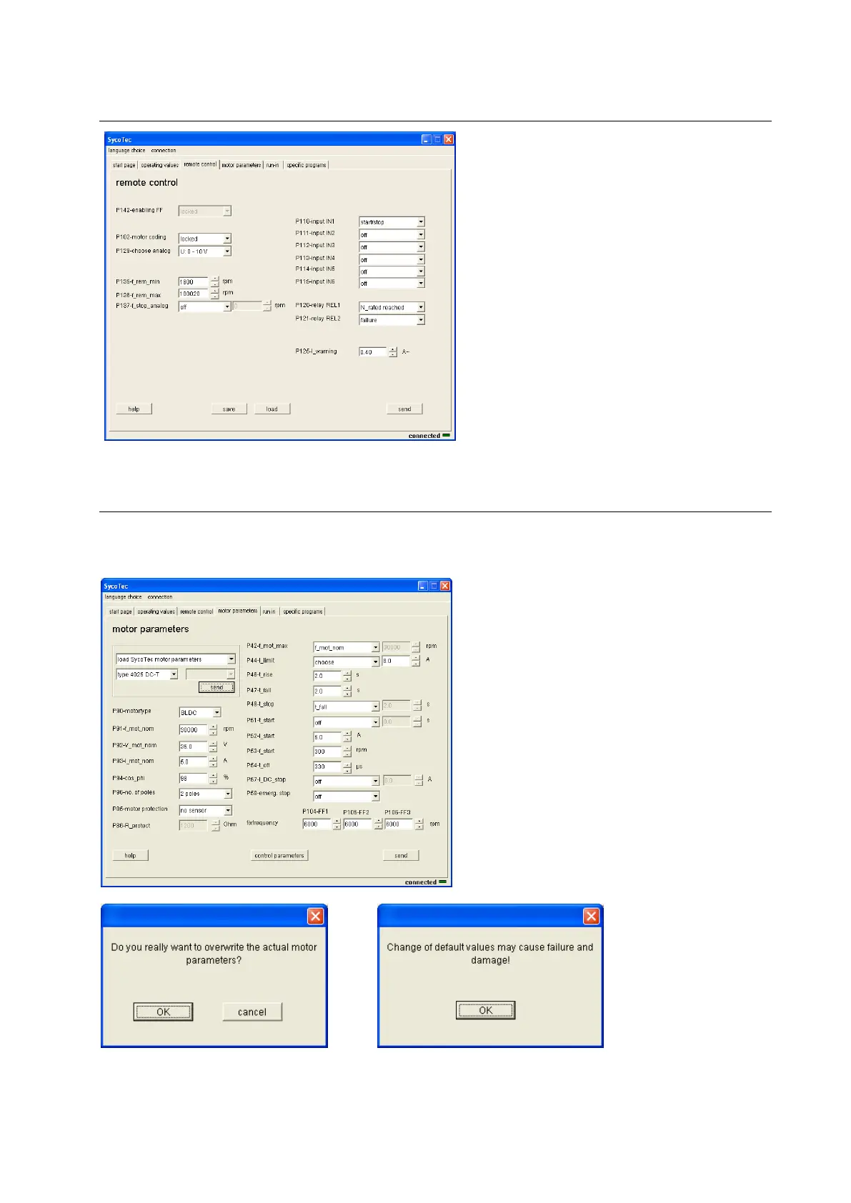 SycoTec easyDive 4425 - Window - Remote Control; Window - Motor Parameters