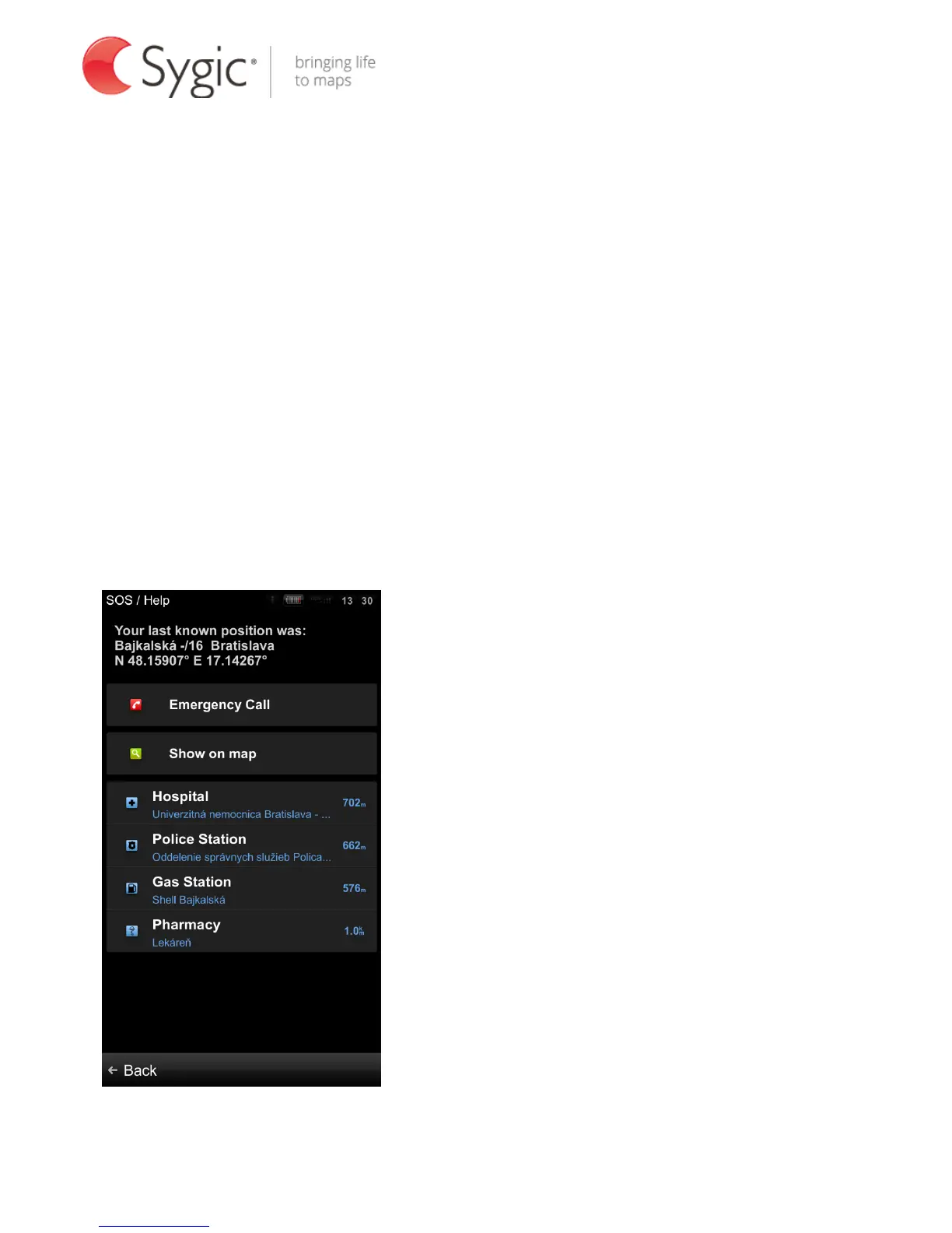 from you. Tap on item to call up Action menu with action such as Drive there,