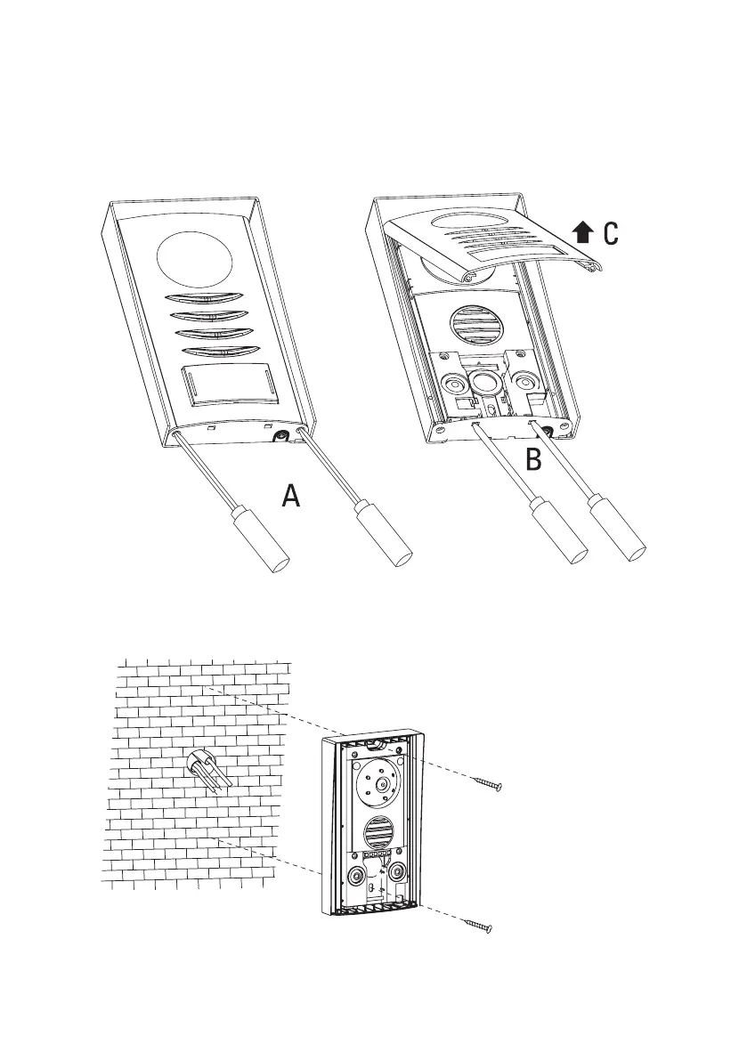 • Attach the outdoor unit to the wall with two suitable screws and, if required, dowels. The camera must be on top