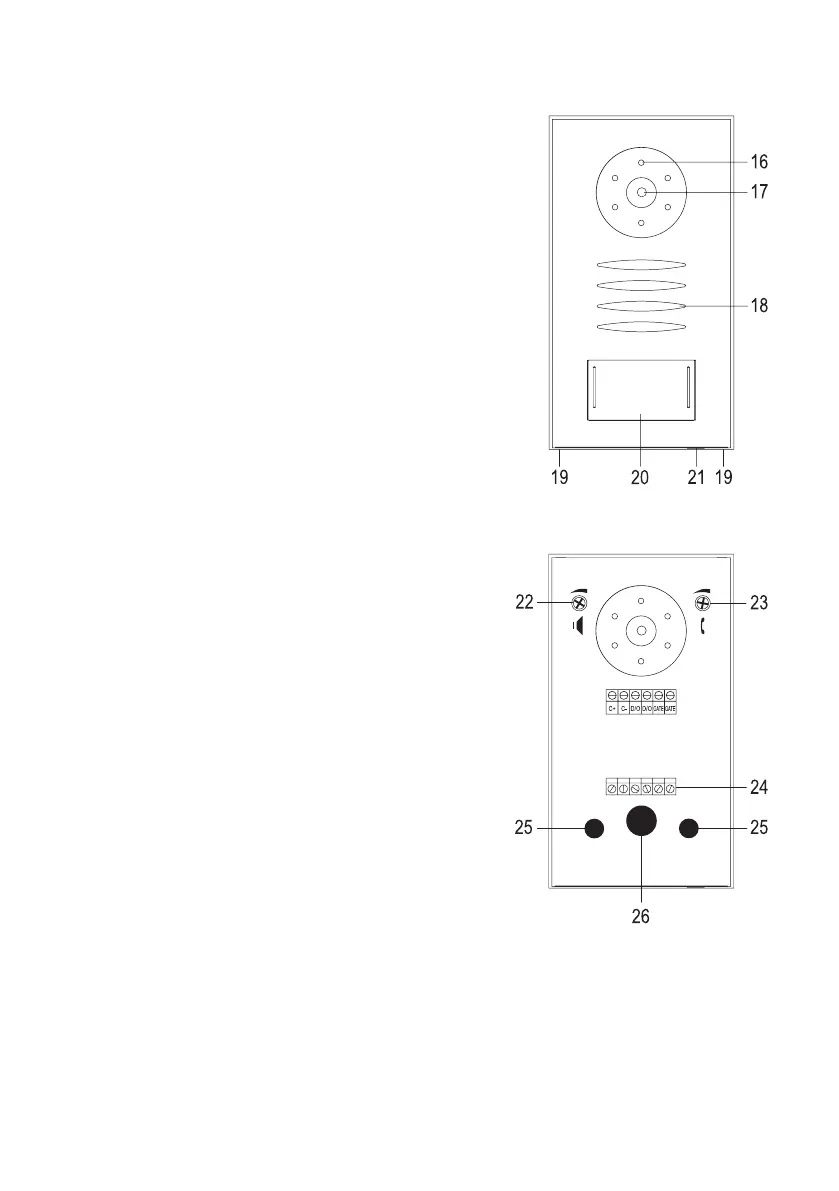Après le retrait de la façade (dévissez les deux vis (19) puis déboîtez la façade), vous avez accès aux éléments de