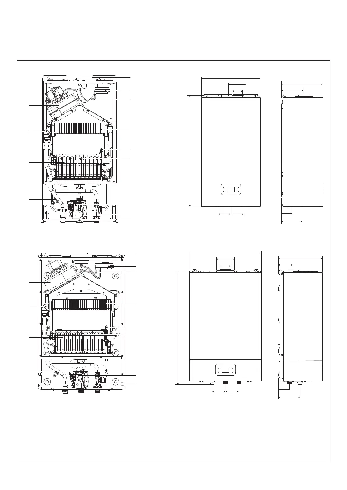 2.1 Elementos funcionais do aparelho / Dimensões totais e ligações