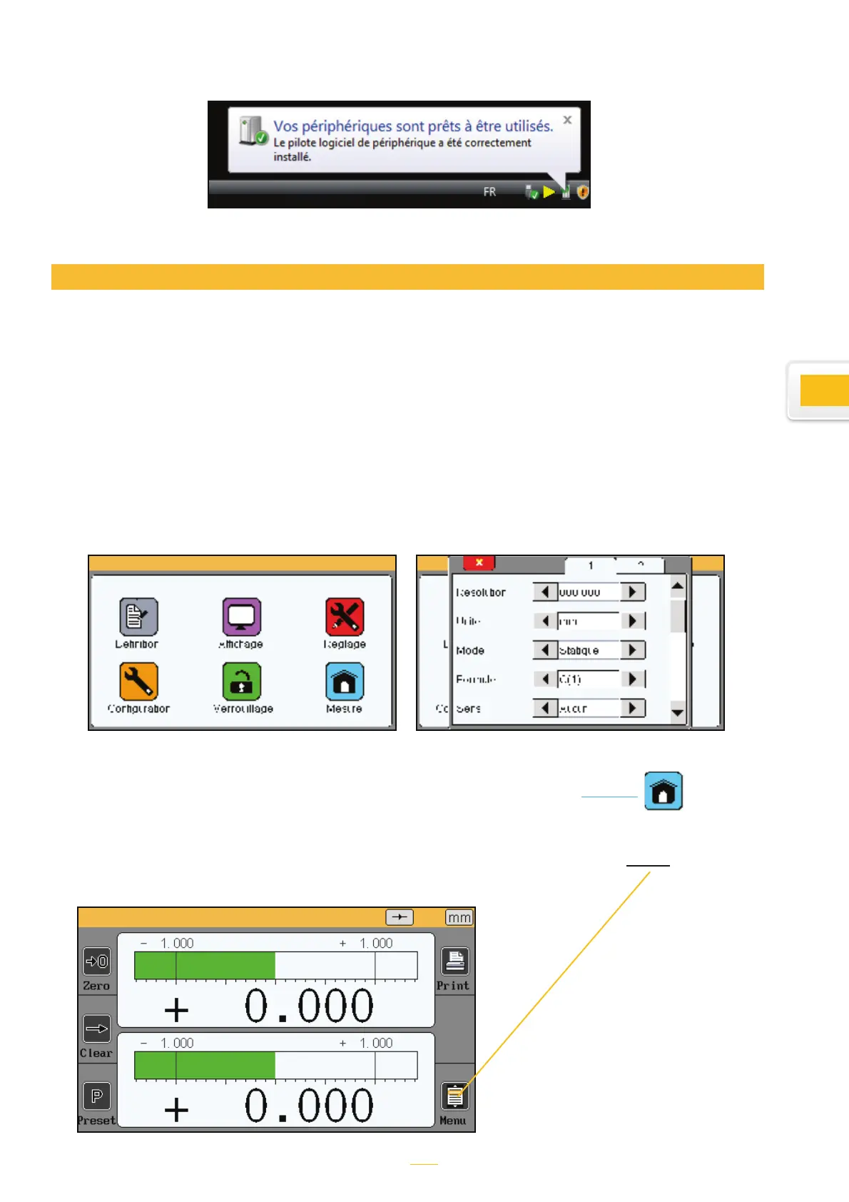tUne partie permettant de configurer l’appareil et la mesure. Il s’agit d’un écran composé