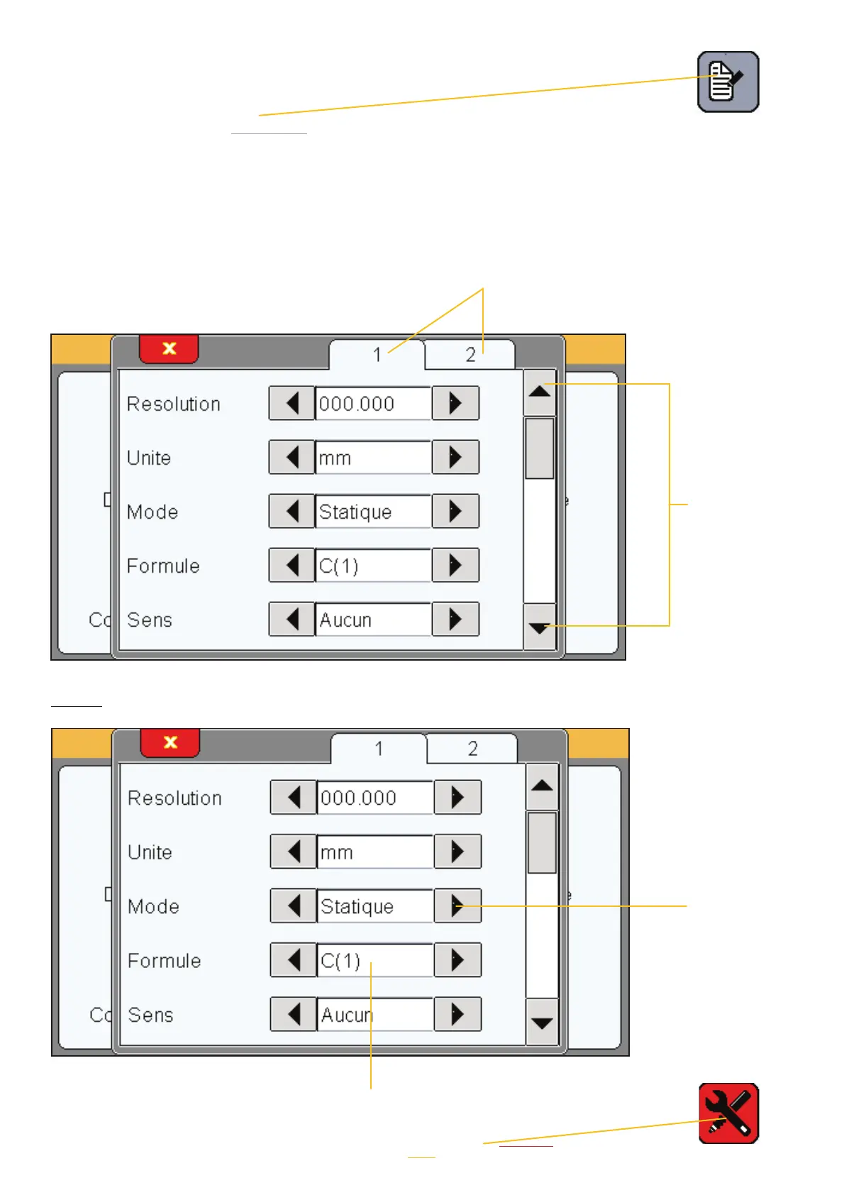 Elle permet de définir les résolutions, unité, formule, tolérances, la cote étalon, de chacune
