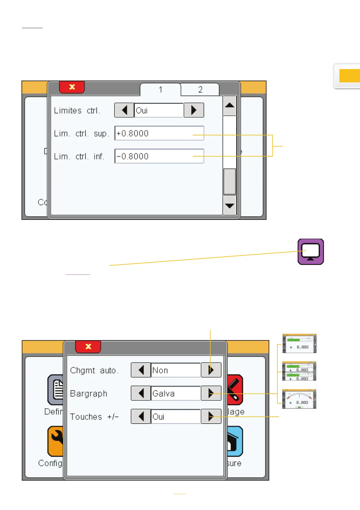 limits are alarms that will alert the user if a tolerance limit is reached (marked in yellow on the