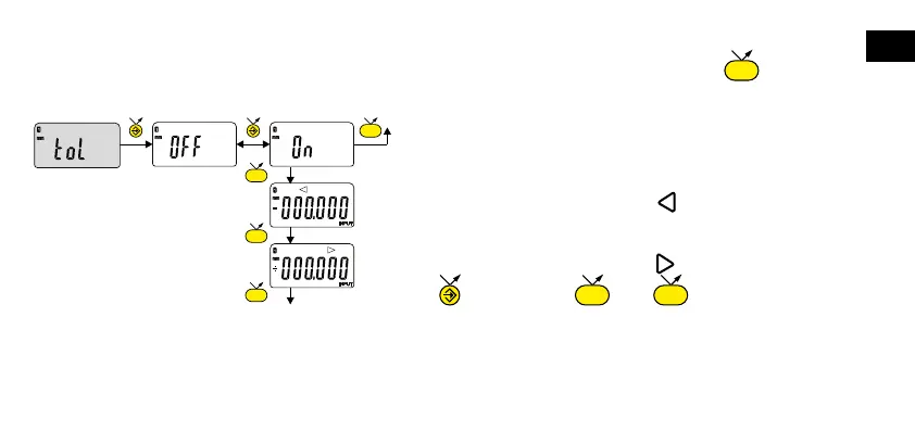To input or modify the tolerance limits, toL On mode should be selected, followed by a short press on :