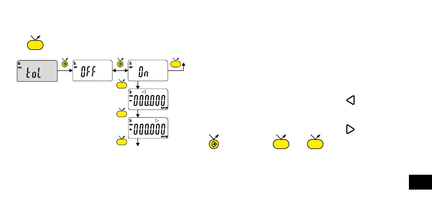 Para introducir o modificar los límites de tolerancia seleccione el modo toL →On y a continuación presione brevemente