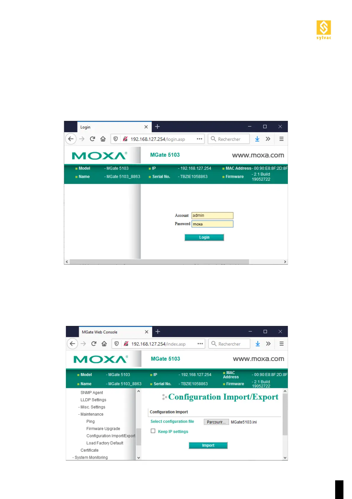 The ‘MGate5103.ini’ configuration file can be loaded to the gateway via the menu shown below.