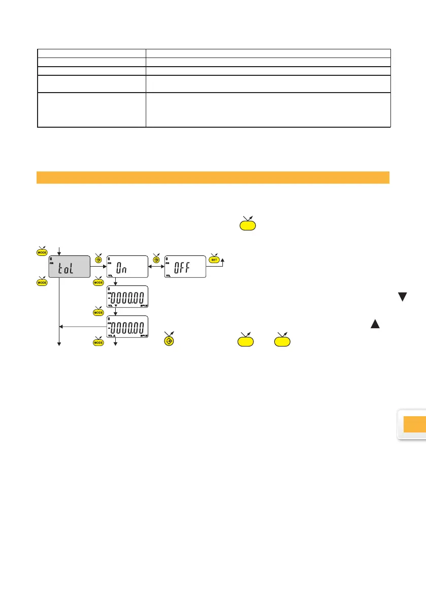 Per inserire o modicare i limiti di tolleranza, è necessario selezionare la modalità
