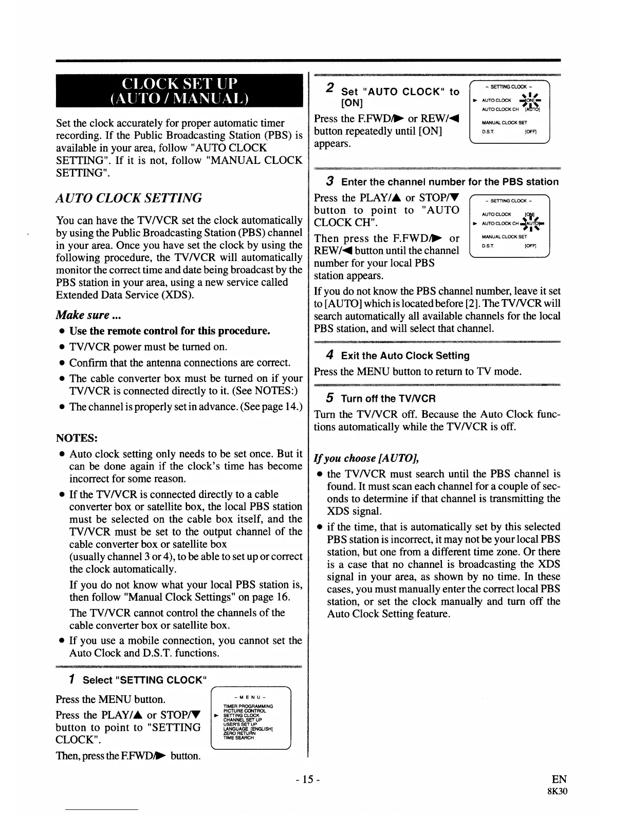 Sylvania 3909LC - CLOCK SET UP (AUTO; MANUAL); Auto Clock Setting