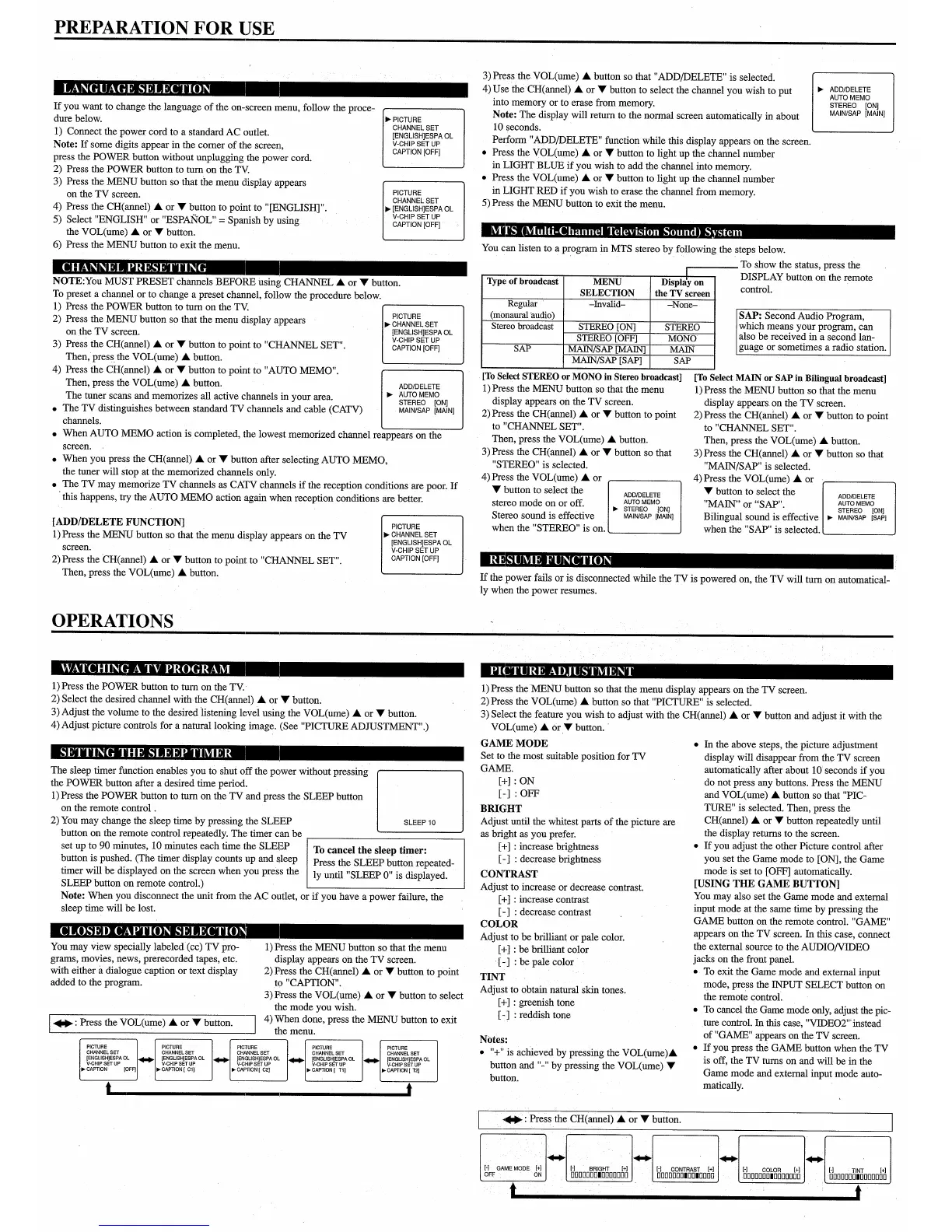 Sylvania 6420FB - Picture Adjustment Menu; Picture Settings and Game Mode