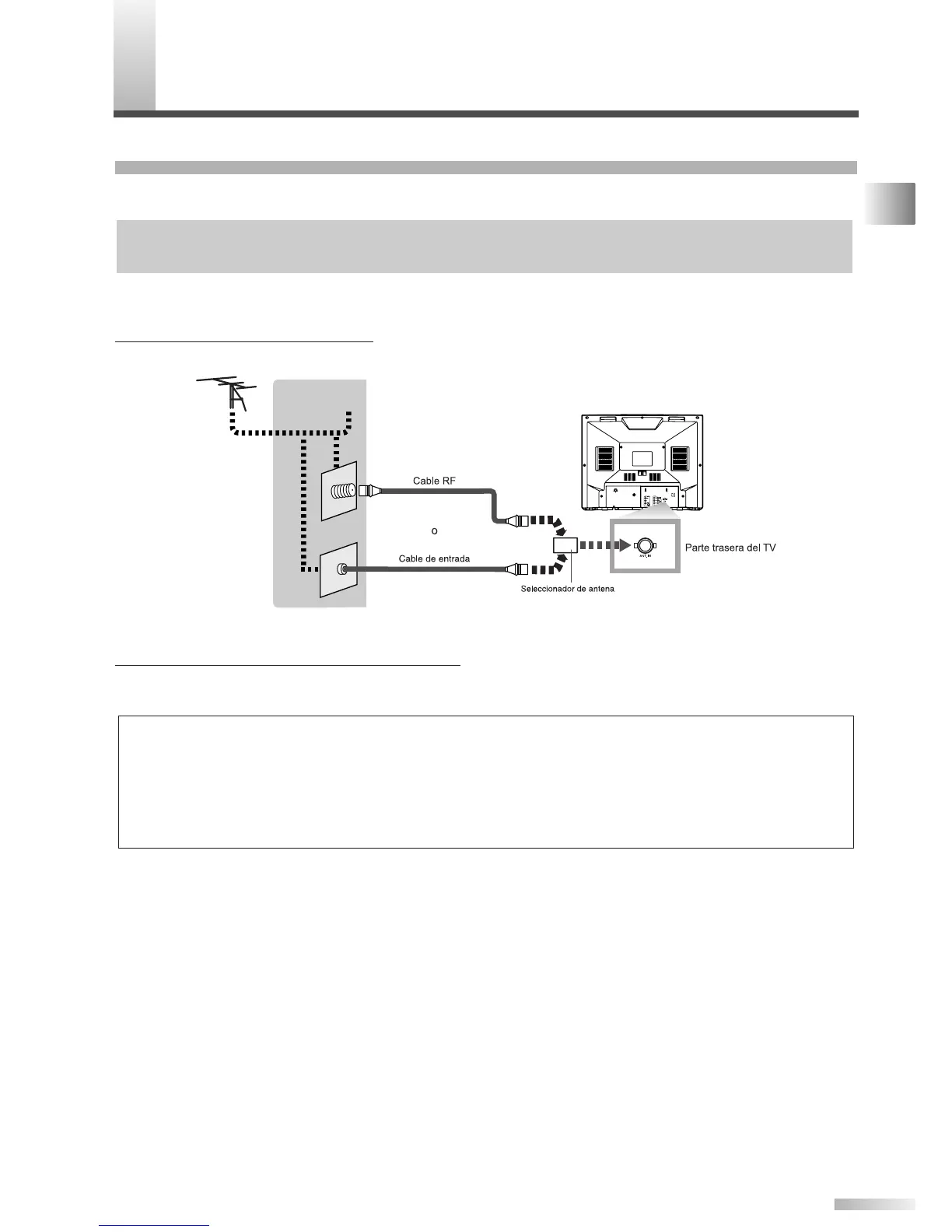 • Para cambiar fácilmente entre los cables de antena y de cable puede comprar un "Selector de Antena" de venta en los comercios.