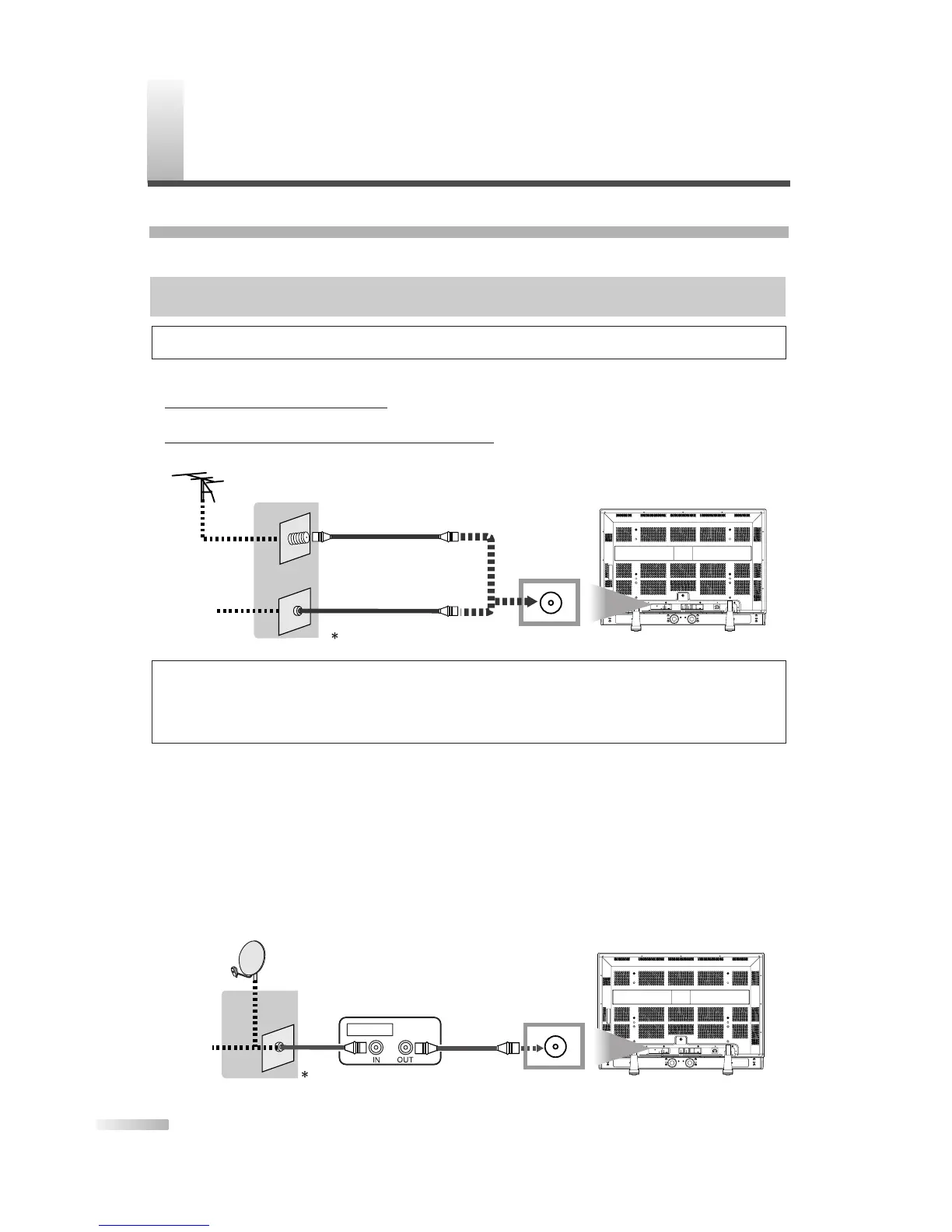 2) Utilice el cable correspondiente para conectar la toma ANT. IN del TV y la clavija de salida a la caja de