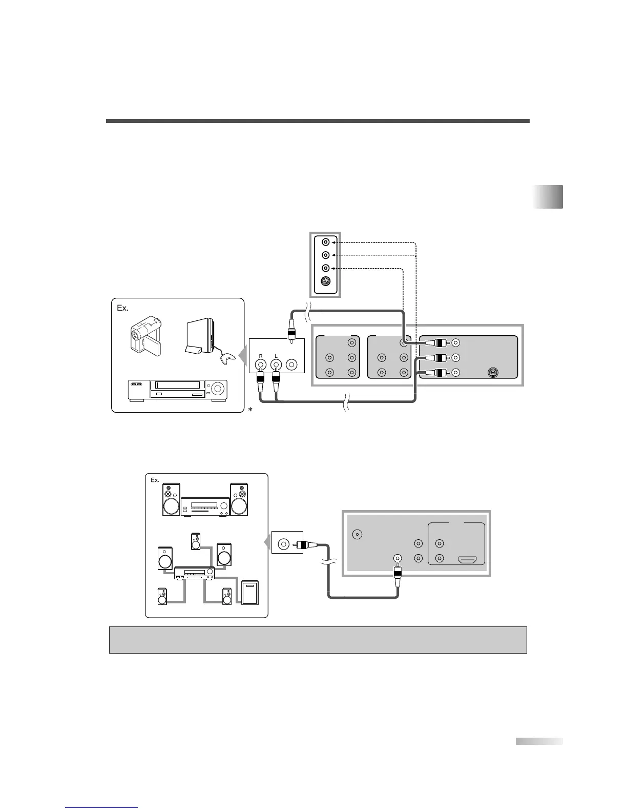 Cuando el conector audio de los equipos de vídeo sea monoaural, conecte el TV a la clavija Audio L.