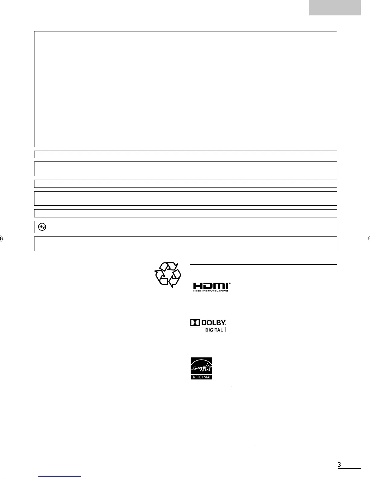 LAMP IN LCD CONTAINS MERCURY, DISPOSE ACCORDING TO LOCAL, STATE OR