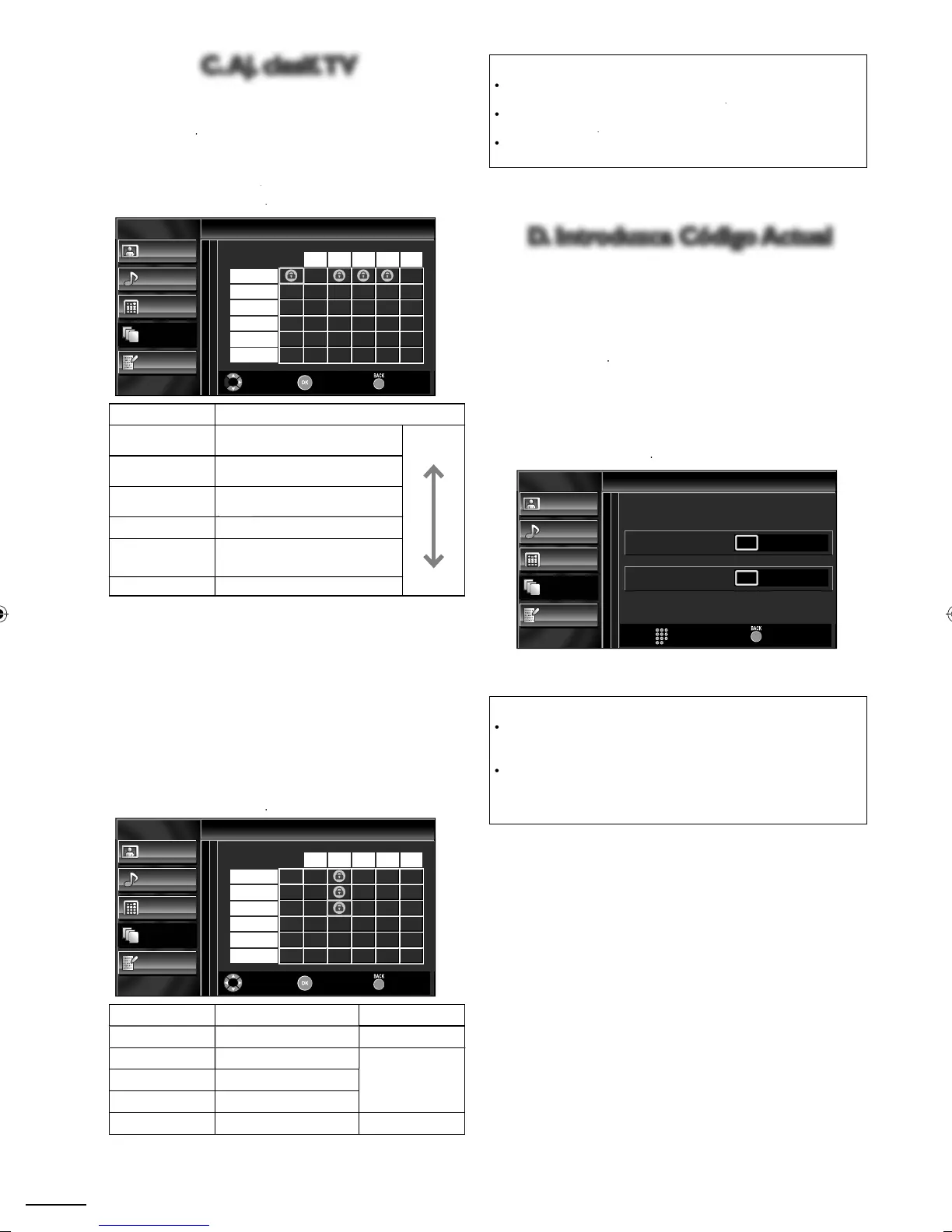 o podrá bloquear una subcategoría (D, L, S o V) si la clase principal está