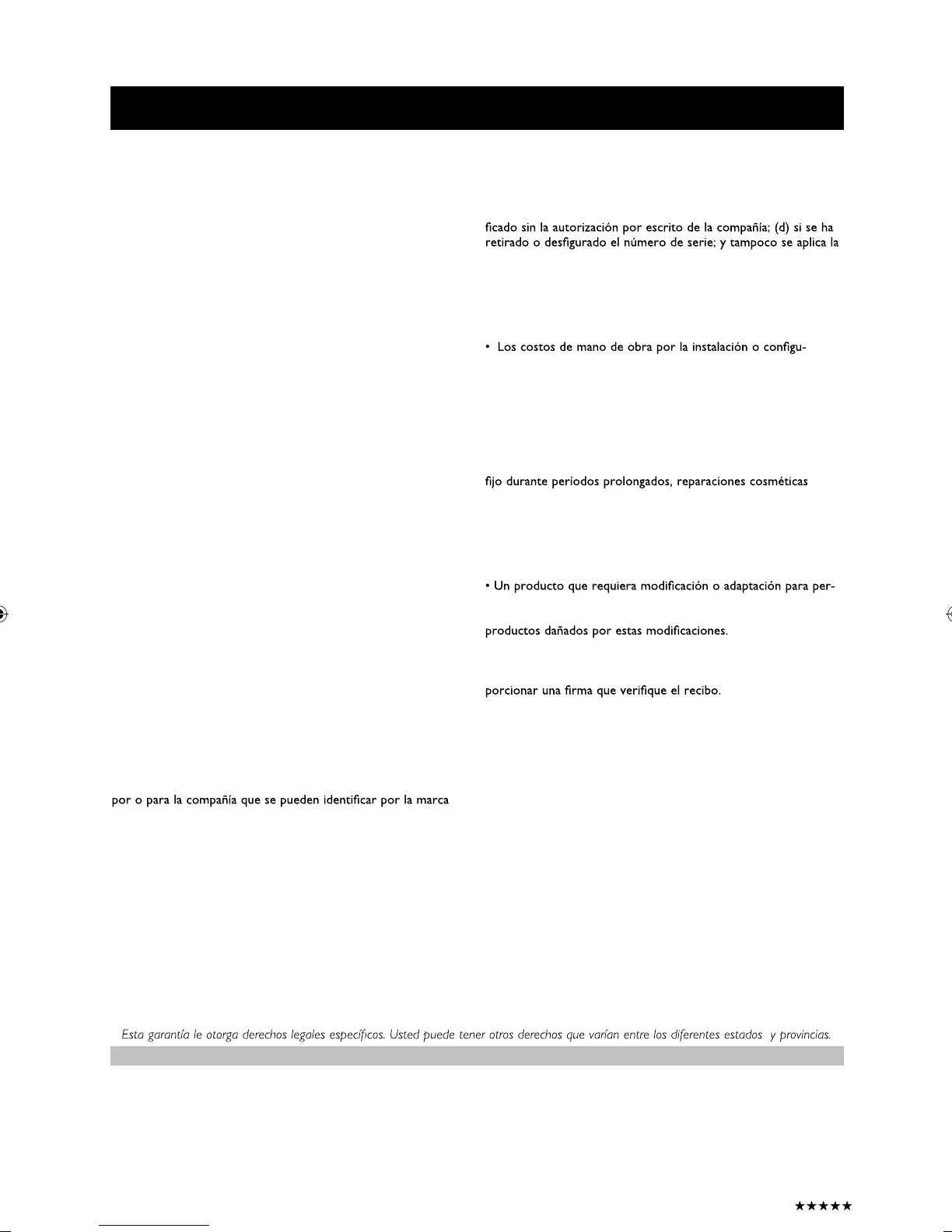 que no esté cubierta por esta garantía. La recuperación o la rein-