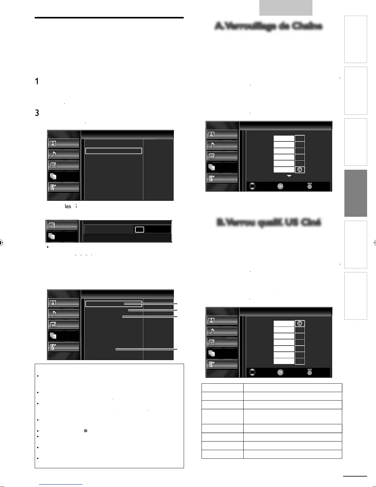 ux États-Unis, l’appareil peut télécharger la table des verrous de codes de