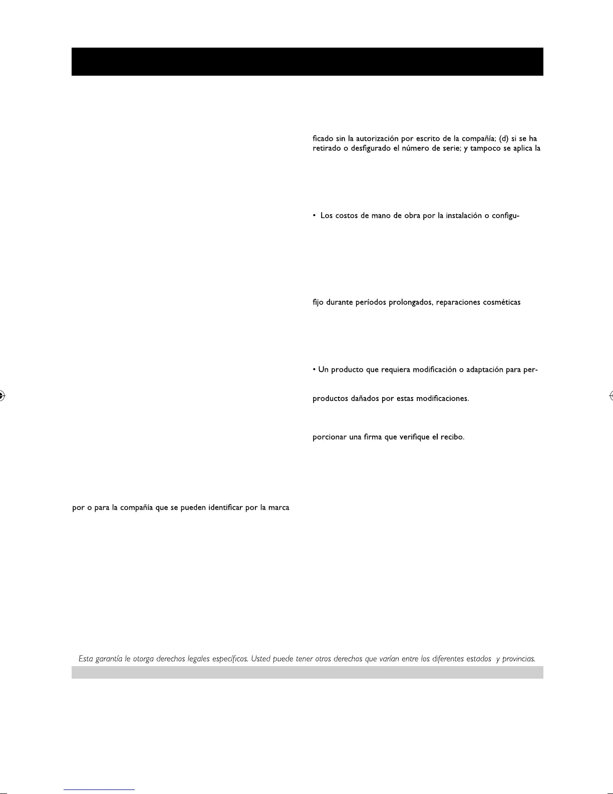spondiente. Esta garantía limitada no se aplica a ningún producto