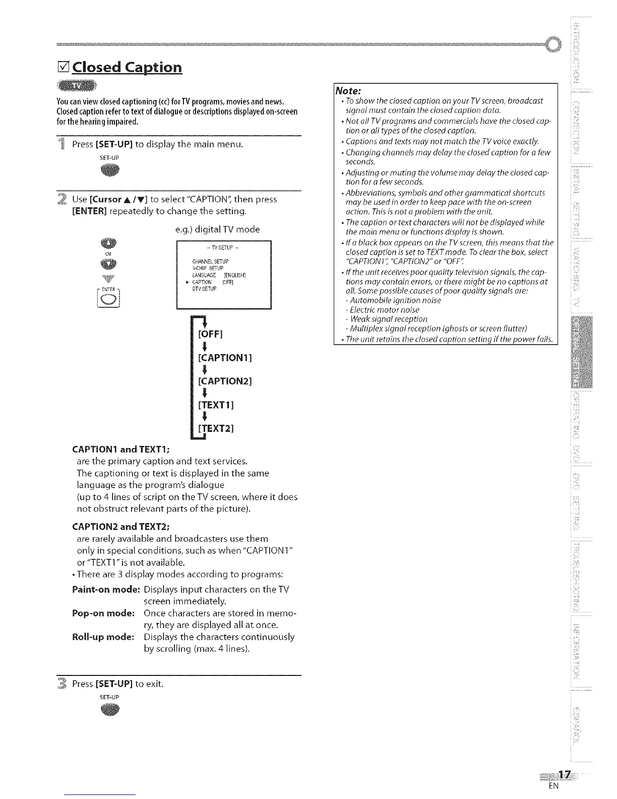 "CAPTION 1" "CAPTION2" or "OFF:".