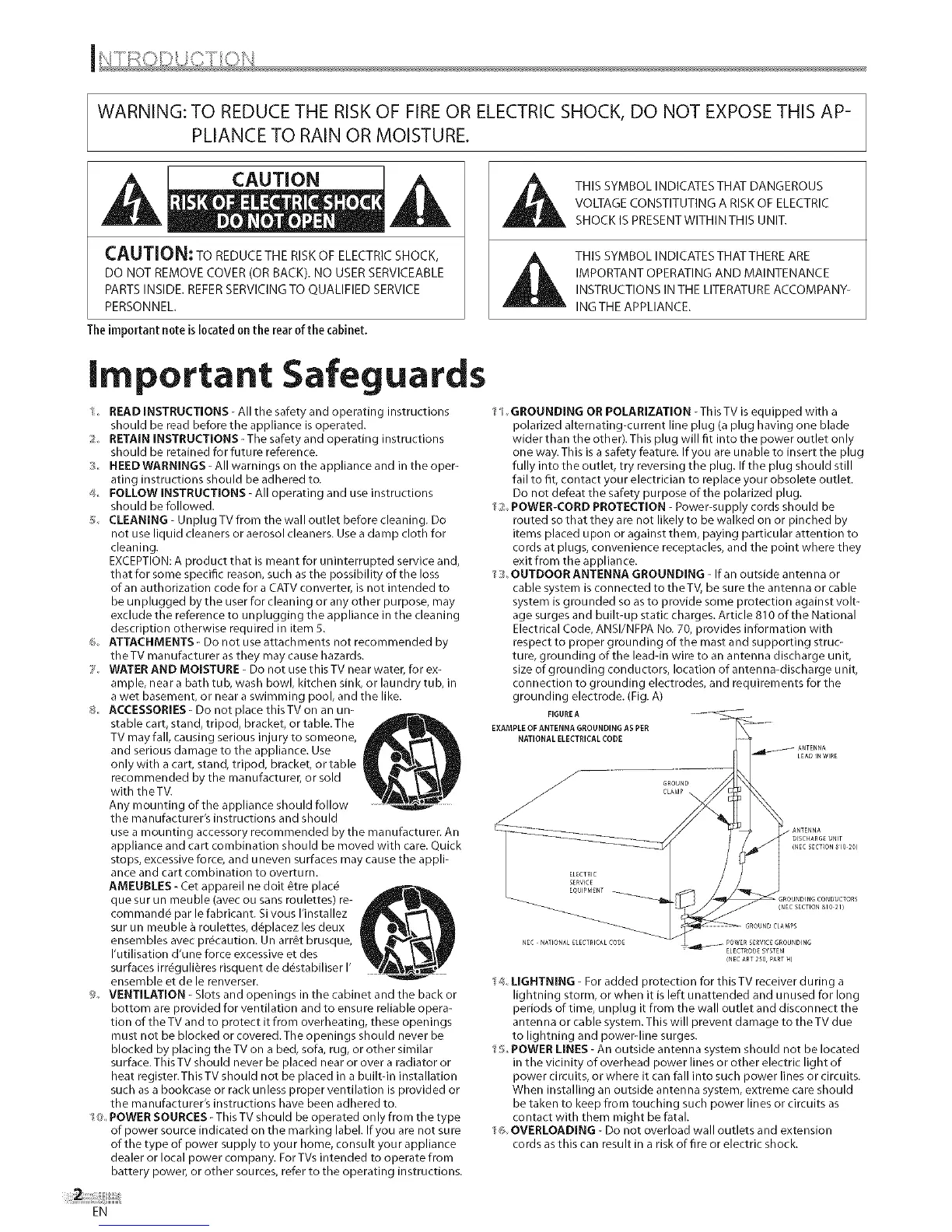 I GROUNDING OR POLARIZATION - This TV is equipped with a