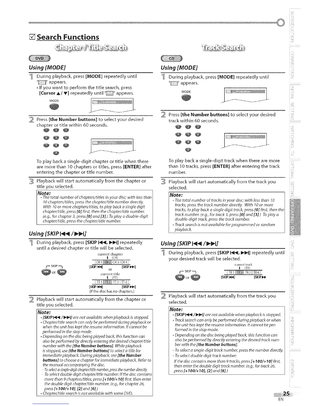 •Chapter/title searchcan only be performed during playback or