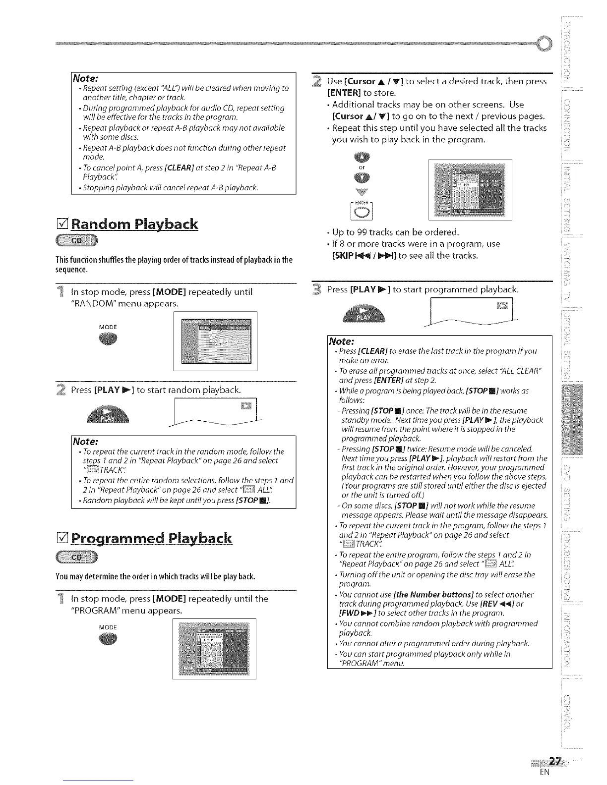 • Youcannot combine random playback with programmed