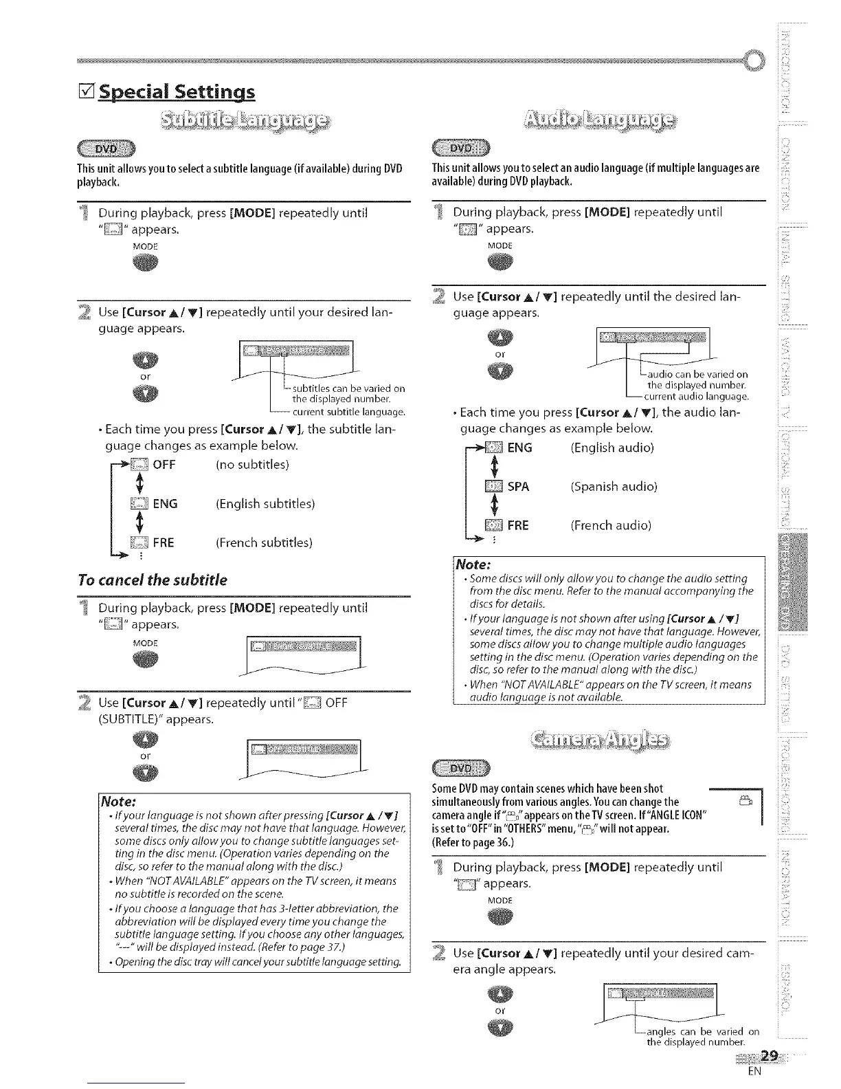 • Each time you press [Cursor _,/V], the subtitle lan-