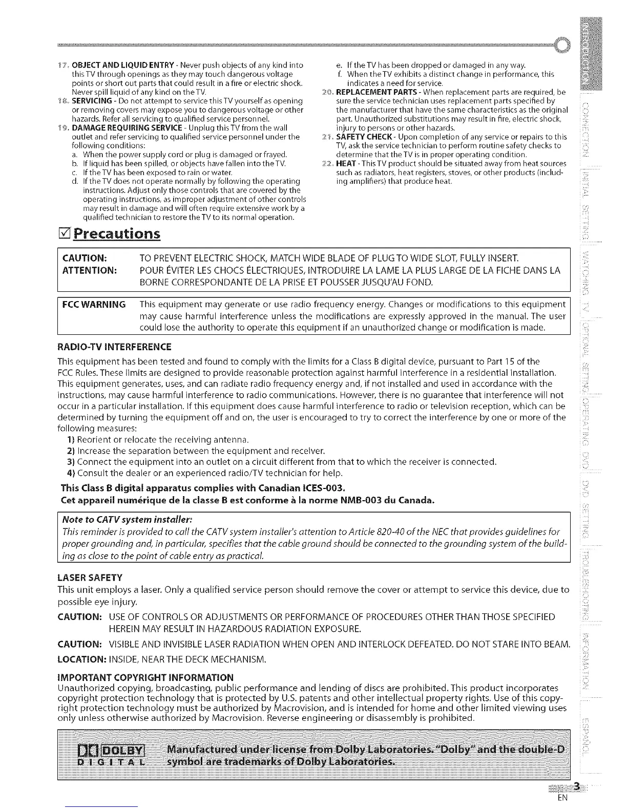 1_ SERVICING- Do not attempt to servicethis TVyou rselfasopening