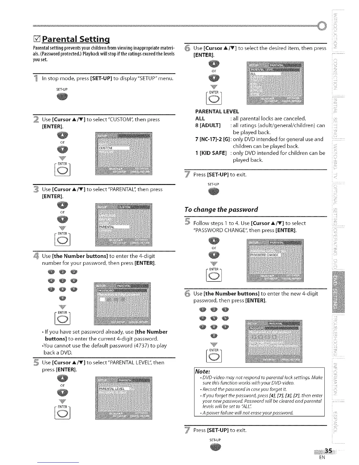 Use [Cursor A/V] to select"PARENTAL LEVEL'; then